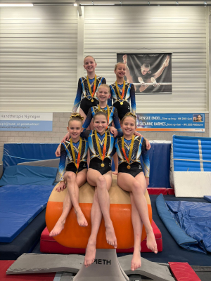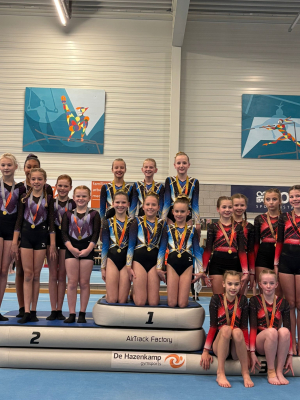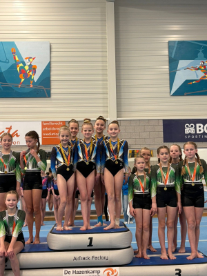 Op zaterdag 22 november was de eerste plaatsingswedstrijd voor de middenbouw 4 en de bovenbouw E. Maar liefst éénendertig turnsters van DOK kwamen in actie. DOK ging met een hoop gouden plakken naar huis! De dag werd afgetrapt door het middenbouw 4-team, bestaande uit: Amy van de Visch, Jorien Dijkstra, Merel Maessen, Lieke Groeneveld en Manouk Arentsen. Het was voor een paar de eerste echte wedstrijd, waardoor nog niet alles vlekkeloos ging. Toch hebben ze aan de jury laten zien wat ze konden. Ze werden namelijk als team 1e! Waarbij Amy zelfs individueel als 1e eindigde.
