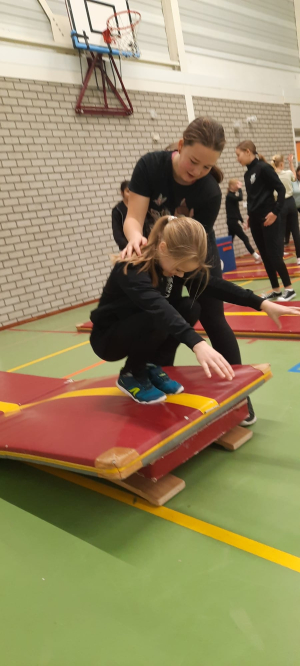 Assistentencursus 2 is de volgende stap en is bedoeld voor deelnemers vanaf 14 jaar. Hier krijgen de cursisten meer verantwoordelijkheid, leren zij oefeningen beter op te bouwen en mogen zij onderdelen van de les zelfstandig begeleiden. Deze cursus is tevens een vereiste voor wie later de opleiding tot zelfstandig trainer (niveau 3) wil volgen. Een docent vanuit de KNGU geeft de lessen. DOK-kers Irma, Manou en Sara zijn aan deze cursus begonnen. Ook jullie natuurlijk veel succes