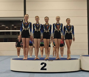 In wedstrijdronde twee was het bovenbouw E-team van Sophie, Lydia, Cheyenne, Loïs en Jaylee aan de beurt. Zij behaalden met het team een vierde plek. Maar individueel mochten een aantal dames wel op het podium komen. Lois werd 1e met een superoefening op brug en vloer. Lydia werd 3e met een prachtige oefening op balk. Ook de andere dames lieten goede oefeningen zien en zij waren dan ook erg blij met de wedstrijd.