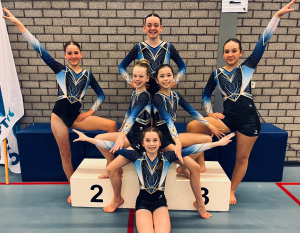 Vervolgens waren de junior D Marit van Omme, Britt Kervel en Liz Hafkamp aan zet. Ze vielen niet in de prijzen, maar ze lieten mooie en stabiele oefeningen zien.