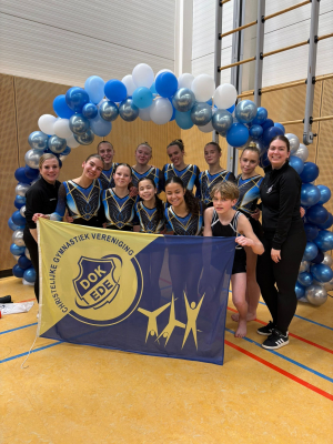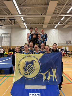We sluiten de dag af met een junior B-team, bestaande uit: Marit van Omme, Nikkie Groenendijk, Jeada Uijterwaal, Marn Wiersma en Yana Gijssel. Dit team heeft een hele mooie, stabiele wedstrijd gesprongen en in een deelnemersveld van negenentwintig teams zijn zij als derde geplaatst voor Ahoy! Ondertussen deed ook de Senior A, bestaande uit: Sterre van den Aarssen, Annelies van Dijk, Lara van Pelt, Lotte Merkies en Lisanne Ensing, goed mee in een sterk deelnemersveld. Op dit hoogste niveau hebben ze als damesteam tussen alle heren laten zien dat ze behoren tot de top en hebben ze zich ook als derde geplaatst voor Ahoy!